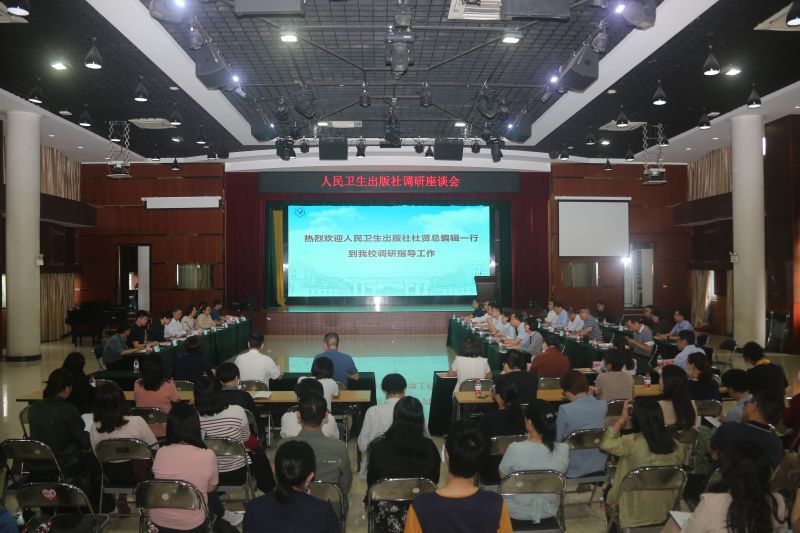 副校长胡丙杰、副校长李建华、马克思主义学院院长刘俊荣、第一临床医院器官系统模块课程负责人秦茵茵、第二附属医院党委书记刘世明、基础医学院党委副书记章喜明、金域检验学院副院长邓小燕以及其他教师代表就教材建设、学术著作出版、期刊杂志建设、人工智能大数据建设等话题与人卫社作了交流。双方拟进一步签订战略合作协议,继续深化合作交流,加强教材建设和管理。