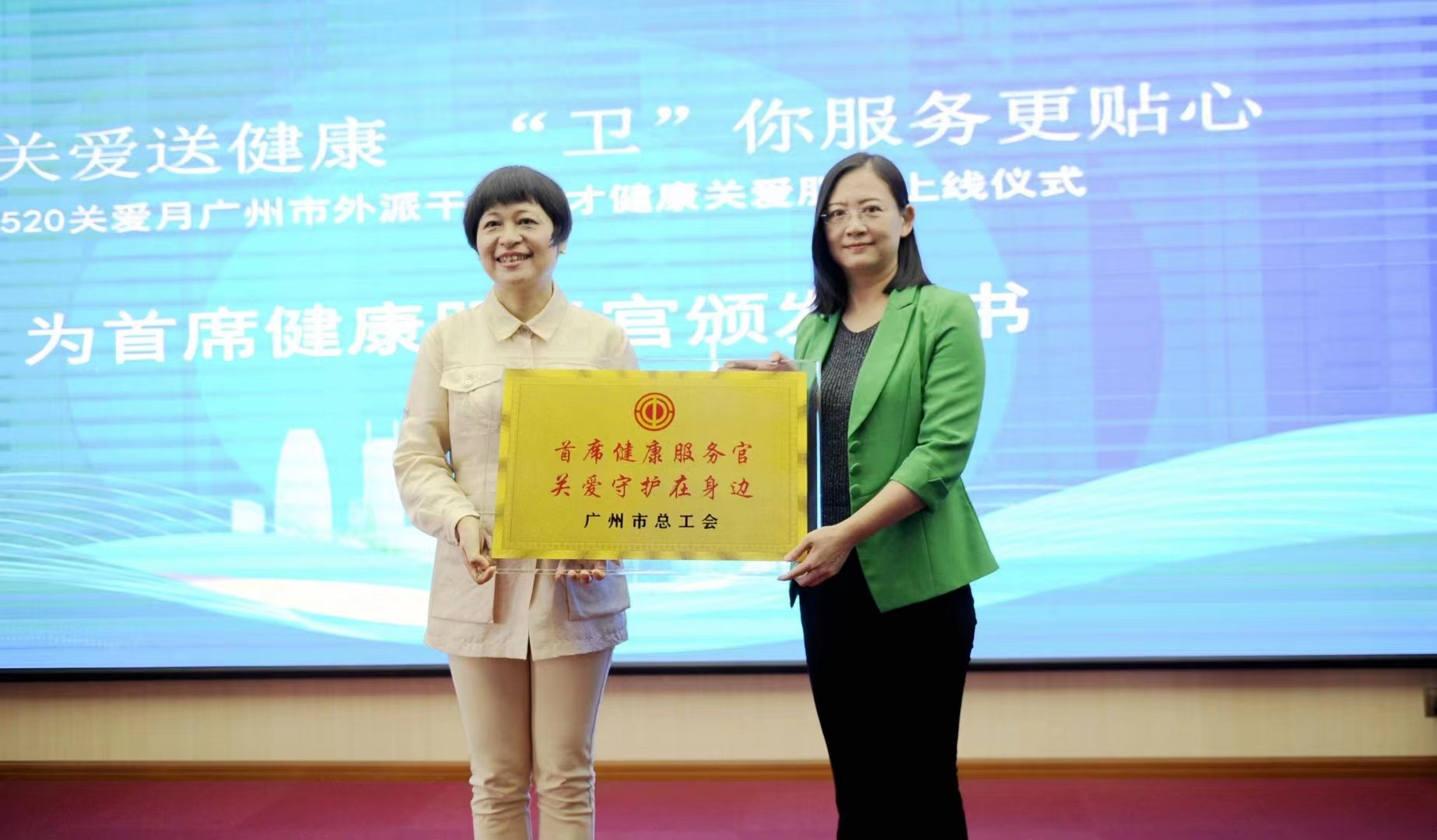 市总工会为best365中国官方网站工会颁发“首席健康服务官”牌匾