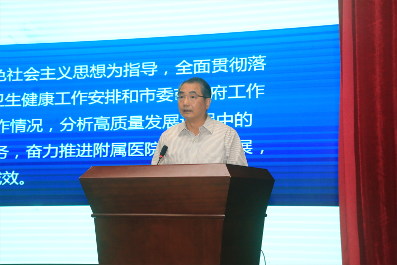 学校党委副书记陈晓辉作题为“深入学习贯彻党的二十大精神 凝心聚力推进附属医院高质量发展”的医院工作报告,传达省市卫生健康工作会议精神,回顾过去五年医院工作情况,总结2022年工作成效,分析附属医院高质量发展面临的挑战和问题,并部署2023年重点任务。