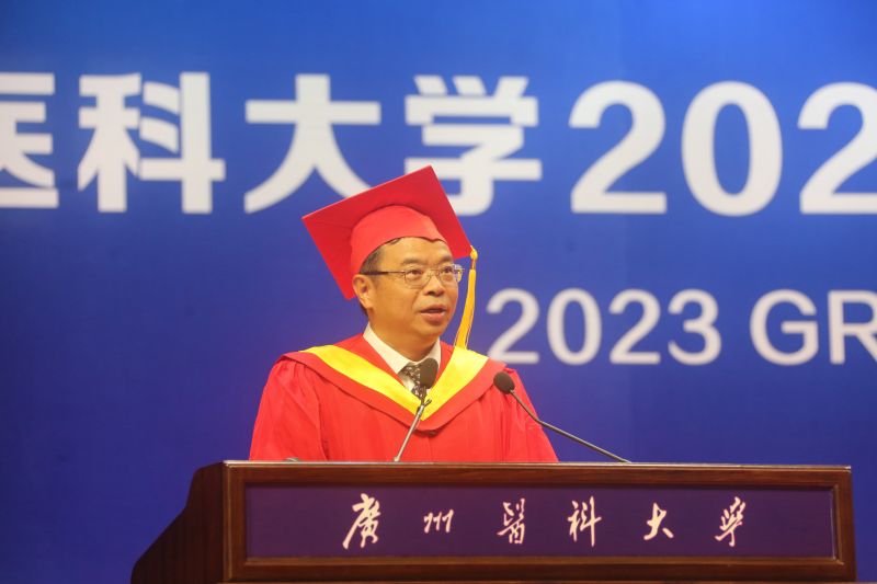在研究生毕业典礼上,他表示,毕业生们是广医发展的见证者与贡献者:同学们在抗疫期间用实际行动践行医者誓言;在科研道路上潜心钻研,书写了广医后浪硬核的学术实力;在各种文体活动中竞展风采,取得优异成绩。最后,他对毕业生们提出祝愿与期望:
