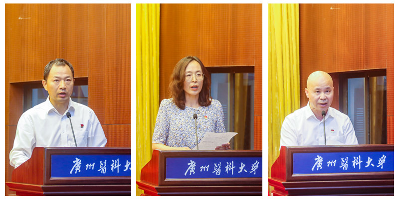 荣获“优秀共产党员”称号的附属第一医院泌尿外科主任医师戚德峰,荣获“优秀党务工作者”称号的药学院教工第三党支部书记吴晓倩,荣获“先进基层党组织”称号的学生工作党总支书记陈伟民依次分享了经验和体会。