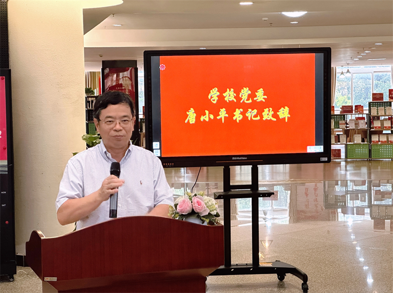 随后,唐小平书记、胡丙杰副校长和现场师生共同参观了“学习宣传贯彻党的二十大精神”主题图书展。展览为全校师生提供了丰富的党政学习资源,展出图书涵盖党的二十大文件及学习辅导读物、学习贯彻习近平新时代中国特色社会主义思想主题教育学习材料、习近平总书记系列重要讲话、马克思主义经典著作等。