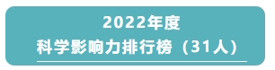 best365共有31位学者入围“年度科学影响力榜单”(表1),其中,有9位学者同时入围“终身科学影响力榜单”(表2)。