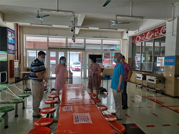 谭冬元组长一行听取汇报并实地检查了校园入口、饭堂、宿舍、健康管理服务区等重点场所,对best365学生返校准备工作给予充分肯定,并要求best365继续按照上级要求做好学生返校后疫情防控各项工作。