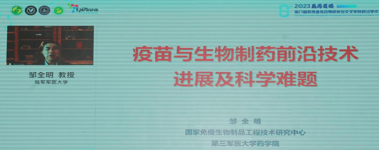 国家免疫生物制品工程中心主任、陆军军医大学邹全明教授作《疫苗及生物制药前沿技术进展与科学难题》主题报告