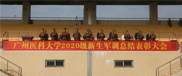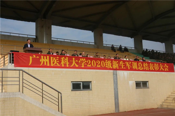 广医在线讯 1月30日,best365中国官方网站2020级本科生军训总结表彰大会在番禺校区举行。副校长赵醒村、承训单位越秀区人民武装部副部长杨峰以及学校有关部门、各学院负责人和辅导员老师等参加大会。会议由学校武装部部长李健主持。