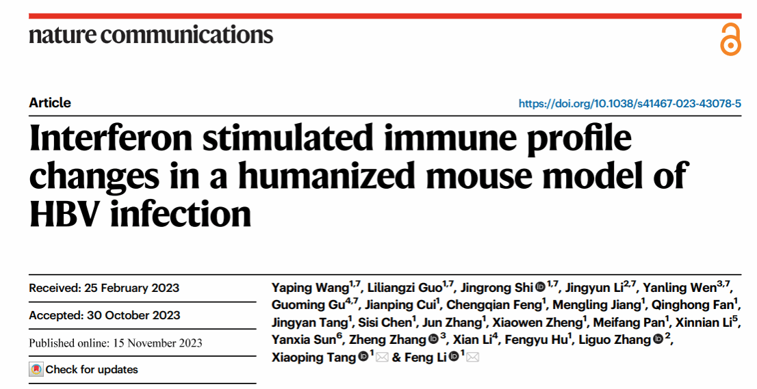 近日,best365中国官方网站附属市八医院李锋教授、唐小平教授团队联合中国科学院生物物理研究所张立国教授团队和深圳三院国家传染病临床研究中心张政教授团队在Nature Communications杂志发表慢乙肝干扰素功能性治愈研究的最新成果:“Interferon stimulated immune profile changes in a humanized mouse model of HBV infection”。该研究成功构建了一种能真实应答人干扰素的huIFNAR小鼠模型;分析得到人干扰素的组织特异性应答谱;在该小鼠模型中证明干扰素能够降低血清HBsAg水平,并发现特定细胞类型可能在实现HBV治愈中起到重要作用。