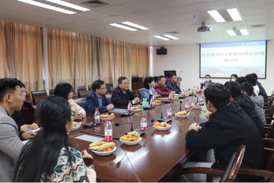 药学院在2月10日举行2021年留校师生新春座谈会,院长余细勇、党总支书记麦倩挚,副院长张超以及辅导员老师为春节期间留校学生送去学院的关怀和新春祝福,并发放新春慰问红包。