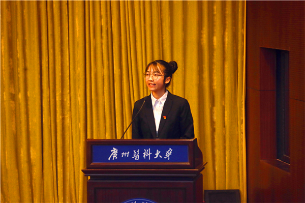 获得国家励志奖学金、学校一等奖学金及“三好学生”称号的公共卫生学院2017级陈冬美同学代表获奖学生发言。她谈到,在广医的4年时光里,南山风格一直引领着她不断前行,特别是在新冠疫情防控工作中,广医人的家国情怀和担当精神使她备受鼓舞。她表示,要继续发扬广医大学精神,切实肩负起当代医学生的使命,为推进健康中国建设和提高人民健康水平贡献自己的力量。