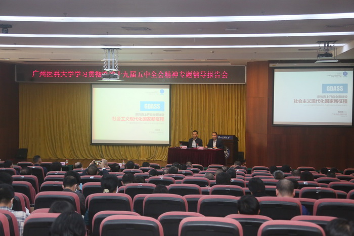 学校领导,校本部全体中层干部、全体党总支委员及党支部委员,以及附属医院领导班子、办公室主任等200余人参加了辅导报告会。