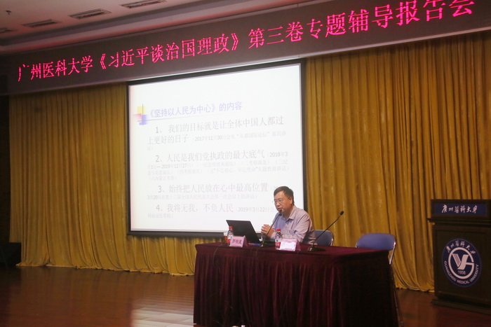 广医在线讯 为进一步深入学习习近平新时代中国特色社会主义思想,努力实现党的创新理论宣传普及全覆盖,10月15日下午,best365举行《习近平谈治国理政》第三卷专题辅导报告会。广州市委宣讲团成员、广州大学马克思主义学院党委书记罗明星教授受邀作专题辅导报告。报告会由学校党委副书记陈晓辉主持。