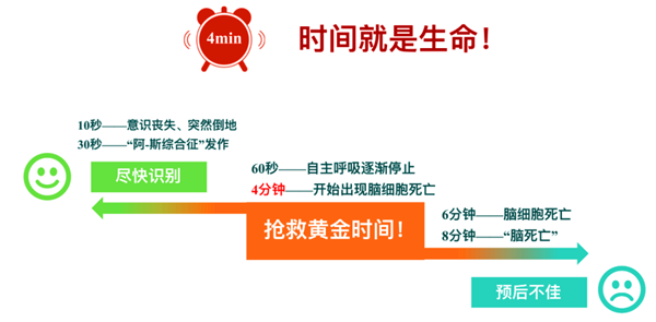医学上认为,要抢救医院外心脏猝死者,唯一的救治手段是胸外按压+心脏除颤,现代医学证明,猝死患者抢救的最佳时间是2分钟,2分钟内心肺复苏的生存率可达90%,4分钟内心肺复苏的生存率约50%,在10分钟后抢救成功率几乎为0。