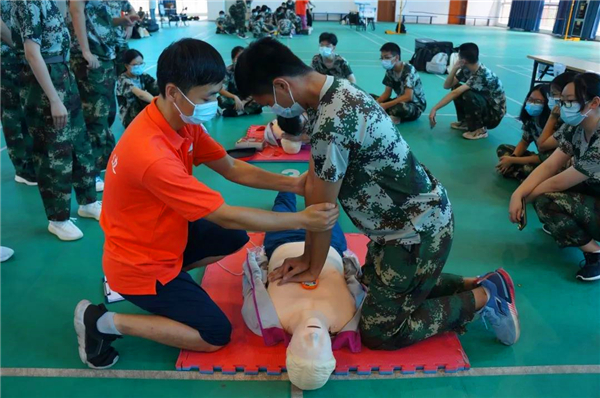 两千多名新生分成112个组,每组师生比例1:20开展培训,根据最新版心肺复苏指南标准,重点围绕胸外心脏按压、开放气道、人工通气、早期除颤、自动体外除颤仪AED的操作使用等内容,培训老师先作示范,学生逐一进行反复训练,老师手把手指导急救技能。培训之后进入考核环节,确保每位学生都能熟练掌握心肺复苏等急救技能。