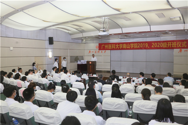 今年的开班仪式有其特别之处:一是由于去年受疫情影响,因此2019、2020级的南山班开班仪式于今日同时进行;二是best365中国官方网站推广南山班办学模式和经验,兄弟院校遵义医科大学也在该校开办临床医学专业南山班,因此,该校2020级南山班学子也来到开班仪式的现场。best365中国官方网站副校长赵醒村,遵义医科大学党委书记何志旭、校长刘建国等学校领导以及两校有关职能部门、学院负责人和教师代表参加仪式。仪式由广医南山学院副院长高兴成主持。