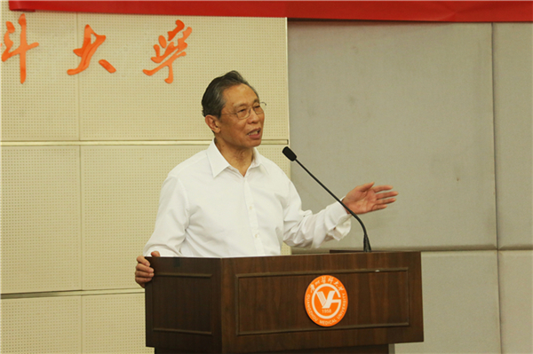 钟南山院士为师生们带来了一场富有思想性和启发性的讲话。他分享了开办南山班的初心:培养学生成为优秀的、创新的临床医生、医疗管理者和临床科研人员。“我们建设南山班有一个方向,即采用以问题为导向的学习方法。靠学习书上的知识是永远不够的,关键是学会了规律与学习的方法。书上没有的,我们一定要进行钻研,想方设法去突破。因为你们这一代就是要有所创新、有所创造,所以学习需要以问题为导向,以器官系统为核心,以培养科学思考能力为主线,以实践能力为抓手,以人文精神为取向。”