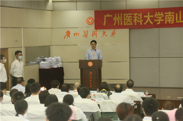 南山学院院长黄锦坤寄语学子们感悟“南山精神”、领略医学真谛,努力成长为德智体美劳全面发展的优秀人才,在全民健康的事业中成就自己的梦想。他也提出三点期望:厚植医学情怀,志存高远;深耕医学领域,勤学励能;涵养开放心态,全面发展。