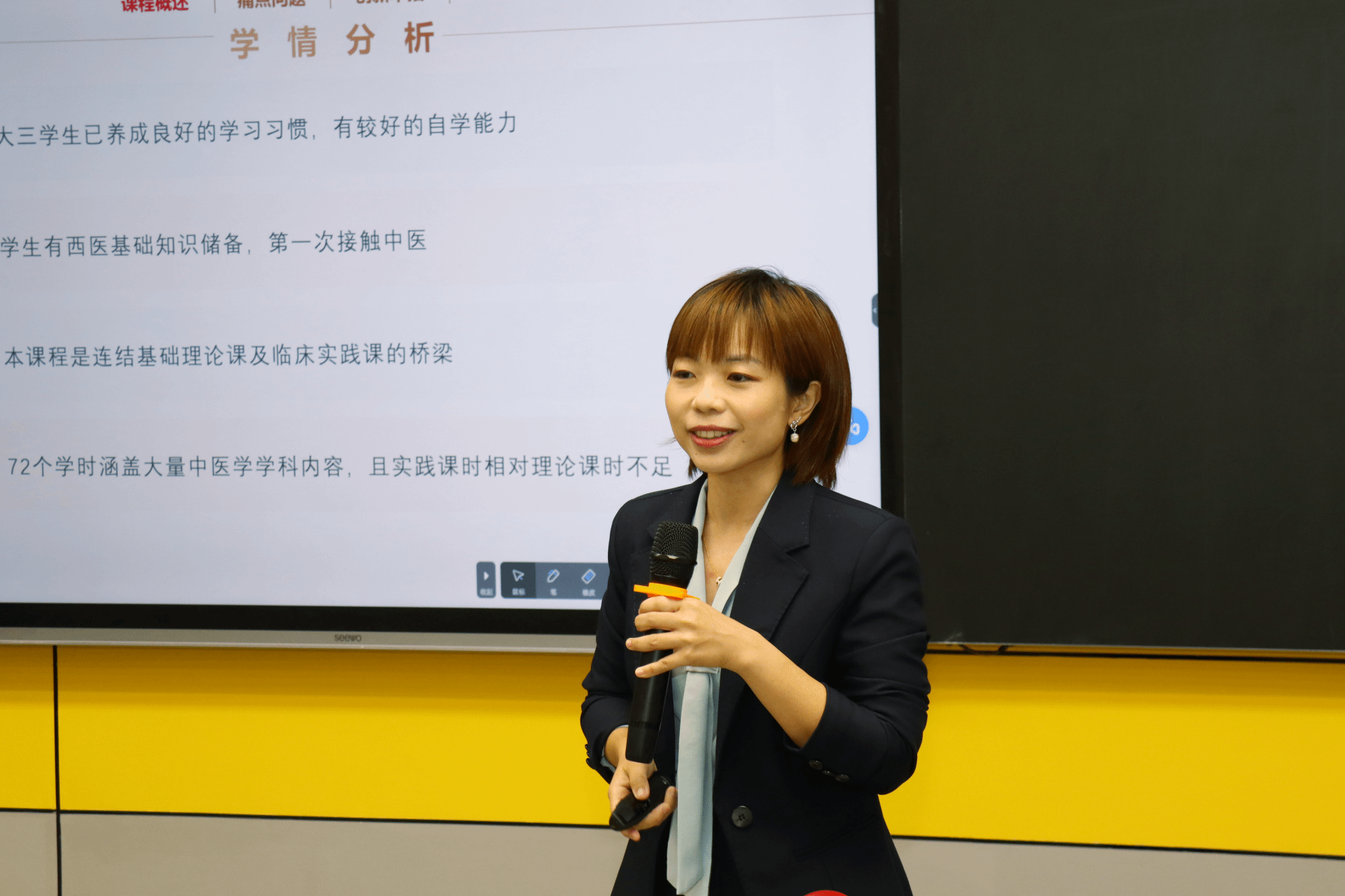 陈文君老师在本届比赛中介绍了《中医学》教学创新及课程思政的举措和成果。该课程坚持以文化为引领,以健康中国战略等国家政策为指导,进行重构课程内容,创设教学环境、整合课程资源等创新举措,并取得了国家级线下一流本科课程等成果。陈文君老师在best365从事教学工作10年,担任兼职班主任、本科生导师,主讲《中医学》《中医诊断学》等课程。她坚持以学生为中心,以体验对比、隐形渗透、启发感悟作为教学策略,帮助学生坚定文化自信,为中西医结合奠定基础。