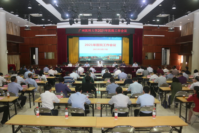 广医在线讯 3月17日,学校在番禺校区召开2021年医院工作会议。学校领导,各直属医院领导班子、非直属附属医院主要负责人、学校各职能部门负责人参加会议,学校党委书记唐小平主持会议。