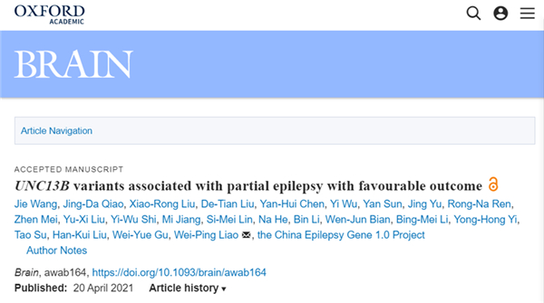 论文链接:NC13B variants associated with partial epilepsy with favorable outcome. Brain, 2021, awab164, https://doi.org/10.1093/brain/awab164