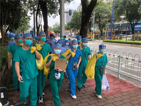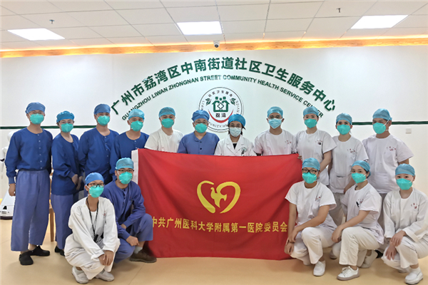 5月30日晚,附一院紧急成立“支援中南街社区抗疫队”,由急诊科副主任医师汪友平等5人组成的医护团队出发前往荔湾区中南街,全面接管该街道社区卫生服务中心。6月5日上午,医院组建第二批医疗队前往中南街支援,由邓雪峰主任带领5名医生、5名护士、1名消杀队员、1名司机与第一批队伍汇合,目前,该院17名医务人员承担所在区域医疗保障任务及协助负压转运工作。
