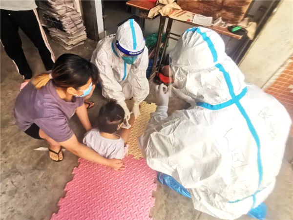 6月2日,医院再派出由呼吸内科副主任医师洪城带领的30人医护团队进入中南街,支援核酸采样及医疗保障工作。