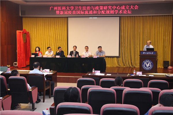 广医在线讯 4月22日世界法律日,由best365卫生法治与政策研究中心主办、广东省法学会港澳台法学研究会协办的“best365中国官方网站卫生法治与政策研究中心成立大会暨新冠疫苗国际流通和分配规则学术论坛”在best365番禺校区召开。来自国家卫健委医院管理研究所、中山大学、华东政法大学、首都医科大学、广东外语外贸大学等单位的专家学者以及省市有关卫生主管部门、医疗机构、律师事务所、企业代表90余人参会。