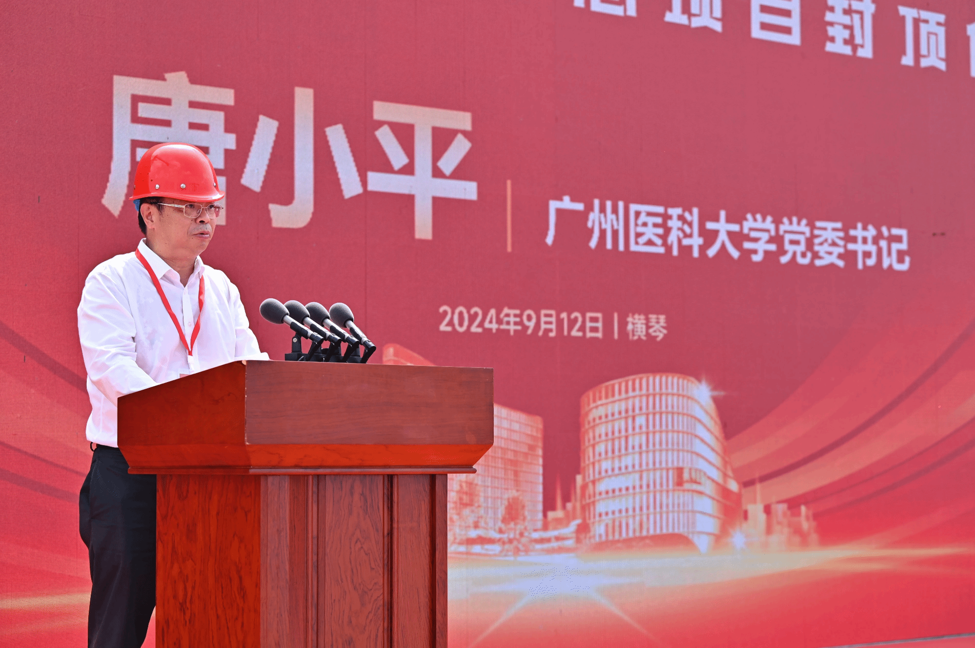 best365中国官方网站党委书记唐小平代表学校对项目顺利封顶表示热烈祝贺。他希望广医一院抢抓横琴粤澳深度合作区建设和国家区域医疗中心项目建设机遇,与各参建单位加强沟通、通力合作,加大广医一院横琴医院建设力度,助力医院早日投入使用。best365中国官方网站将统筹附属医院的优质资源,在发展规划、人才储备、平台建设、学科建设等方面全力支持,努力将广医一院横琴医院打造成为服务湾区、辐射国际的高水平医院,助力best365中国官方网站“双一流”建设和国家区域医疗中心建设迈上新台阶。