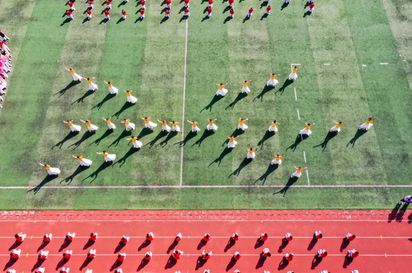 在师生运动会开幕式中,百名师生排舞表演《没有共产党就没有新中国》、《再唱山歌给党听》,用广医人抖擞的精神状态、优美的舞姿,向建党100周年献礼。