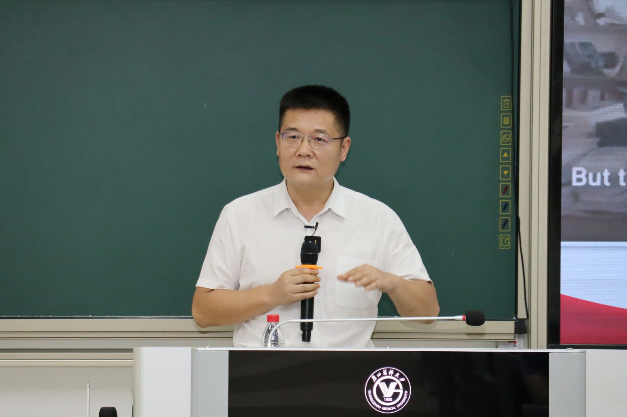 在题为“深入学习贯彻党的二十届三中全会精神 勇担新征程改革创新使命”的思政课上,学校党委书记唐小平教授为同学们介绍了党的二十届三中全会审议通过的《中共中央关于进一步全面深化改革、推进中国式现代化的决定》,详细阐述了落实科技人才战略的广医历史实践,分享了新征程中广医的改革创新之路,并号召广医青年勇担使命,为推进健康中国建设和中国式现代化建设贡献青春力量。