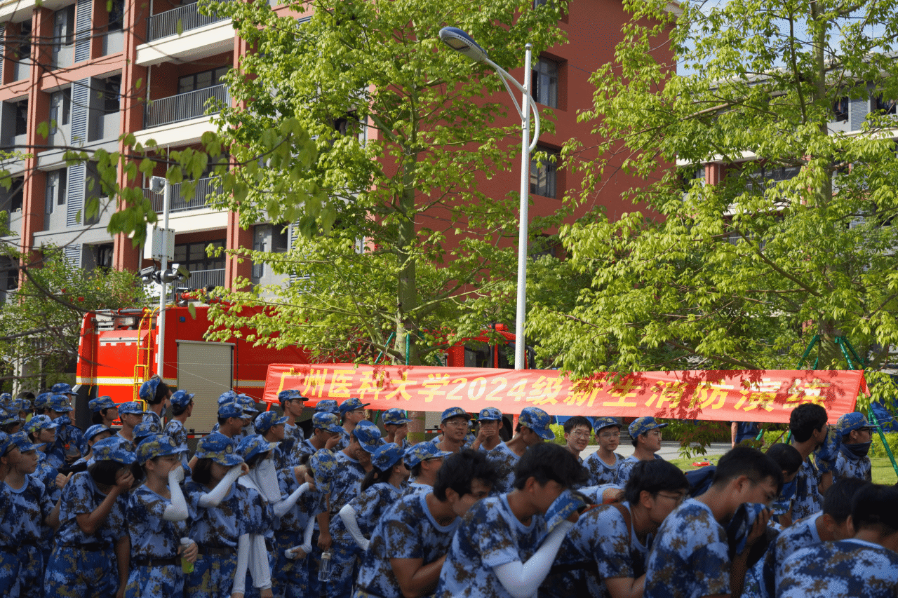 军训期间,新生还进行了消防演练,学习防火、灭火知识和技能。