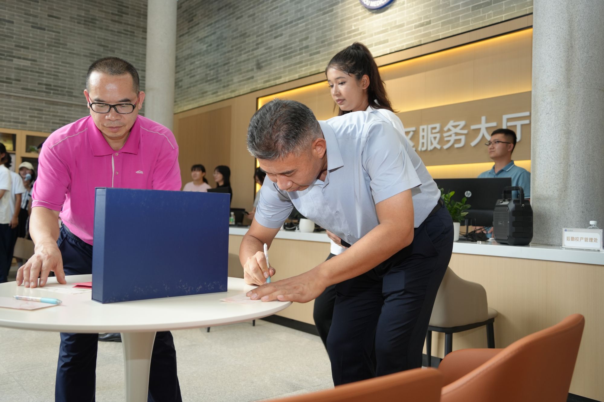 各入驻部门的服务窗口前,摆放着清晰的指示牌和资料,方便同学们快速办理所需服务。