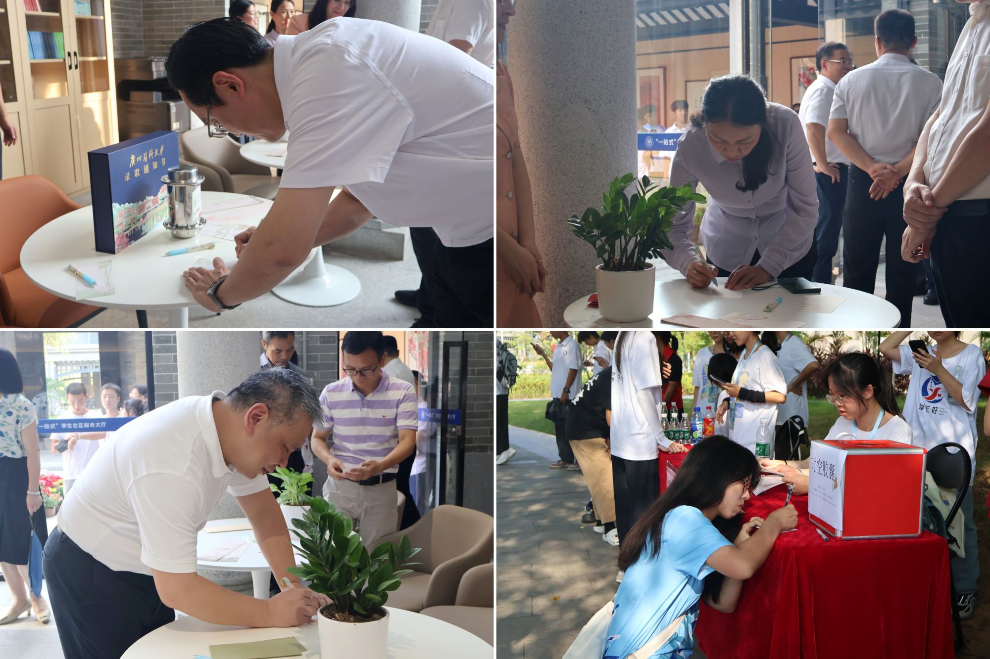 为纪念大厅启用,活动还特别设置了“小e时光胶囊”环节。师生们在参观咨询之余,纷纷写下自己对未来的寄语或愿望,并亲手将其封存于精美的时光胶囊盒中,埋入古树之下,待到3年之后再开启验证。
