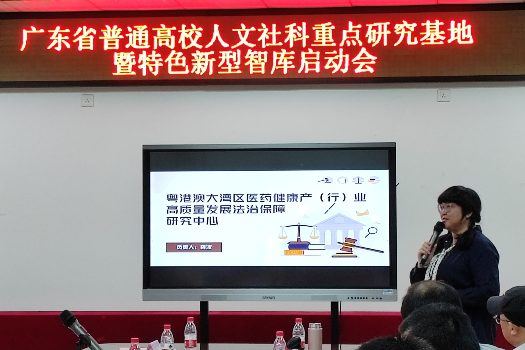 随后,举行揭牌仪式。标志着由广东省普通高校卫生健康法治与政策人文社科重点研究基地、广东省普通高校特色新型智库粤港澳大湾区医药健康产(行)业高质量发展法治保障研究中心(智库)正式成立。