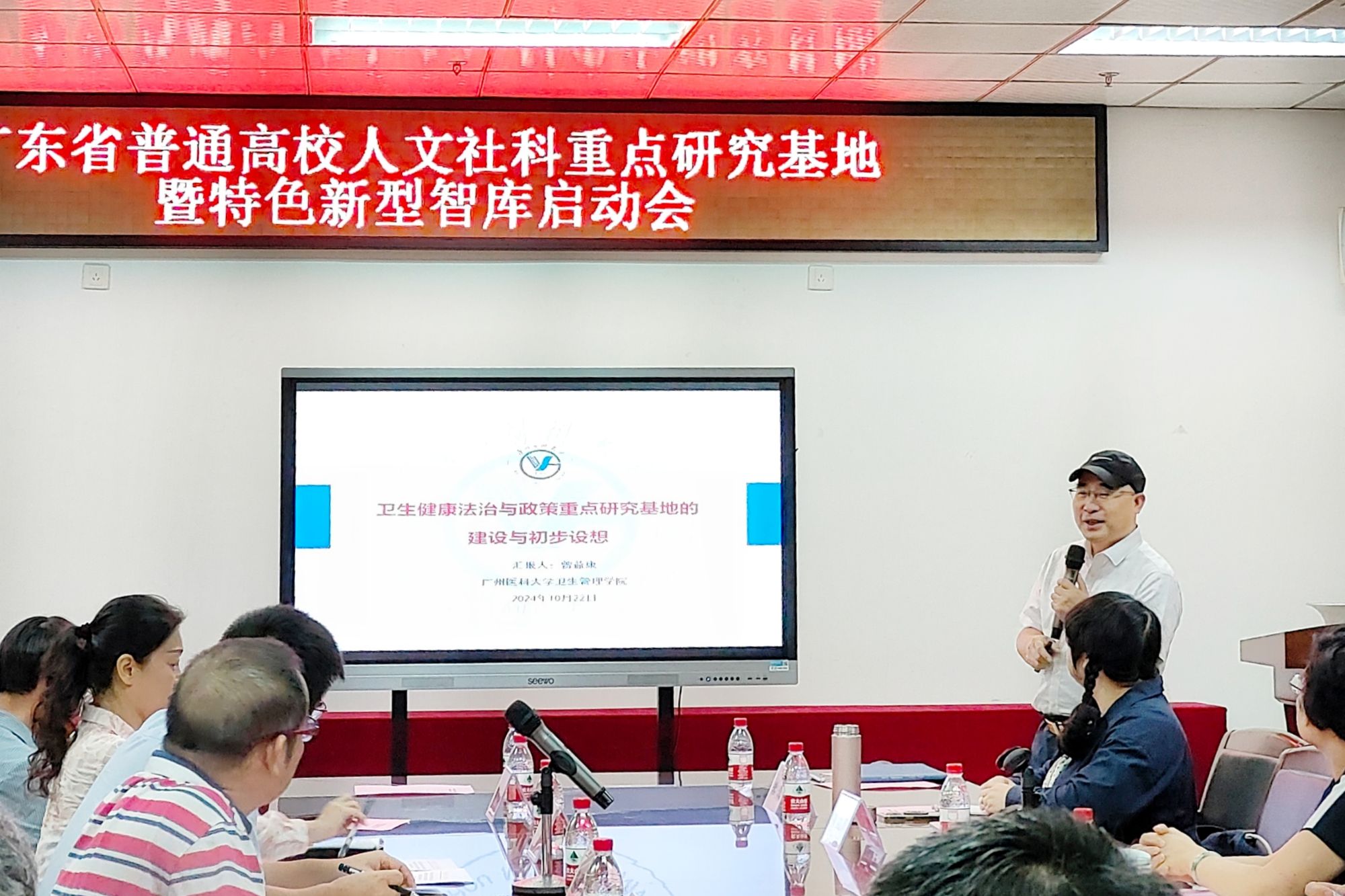 卫生管理学院尚鹤睿院长主持本次会议,介绍了广东省普通高校人文社科重点研究基地、特色新型智库的设立对学院教学科研以及学科发展的重大意义。