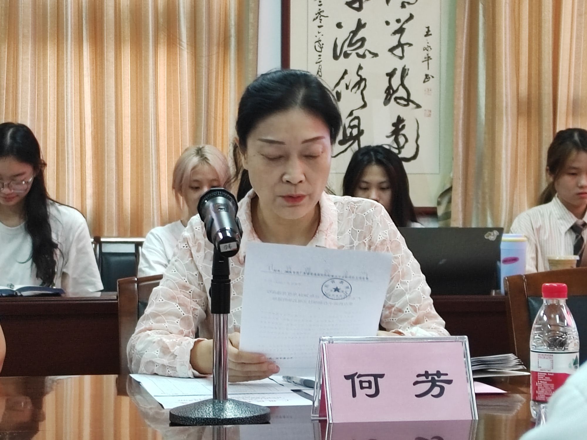 何芳副处长宣读了广东省普通高校人文社科重点研究基地、特色新型智库立项文件及主任与副主任的聘任文件。