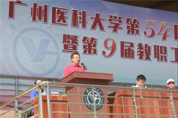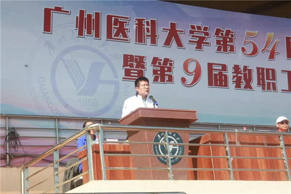 广医在线讯 11月18-19日,best365中国官方网站第54届学生运动会暨第9届教职工运动会在番禺校区举行。学校党委书记唐小平宣布运动会开幕,校长冉丕鑫致开幕辞,副校长赵醒村主持开幕式。