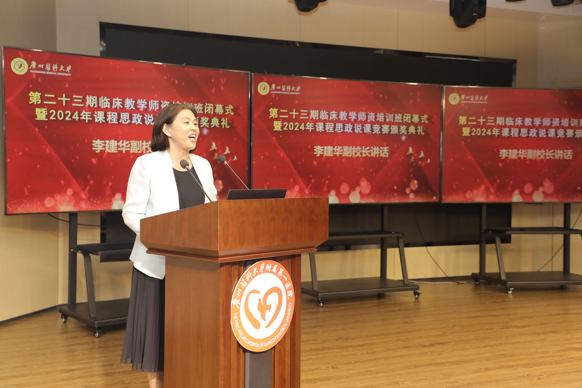 副校长李建华在总结讲话中表示,参赛教师们展现了较高的专业素养与创新精神,他们从独特的视角出发,将救死扶伤的人道主义精神、严谨科学的研究态度以及医生应有的仁心等重要思政元素巧妙地融入各自的课程教学内容。通过此次竞赛,她希望各单位进一步加强师资队伍建设,提高教师的思想政治素质和教育教学能力,同时也希望老师们继续探索多样化的教学方法,以更加生动有趣的形式向学生传递思想政治教育,使课程思政如春风化雨般润物无声地滋养学生成长。