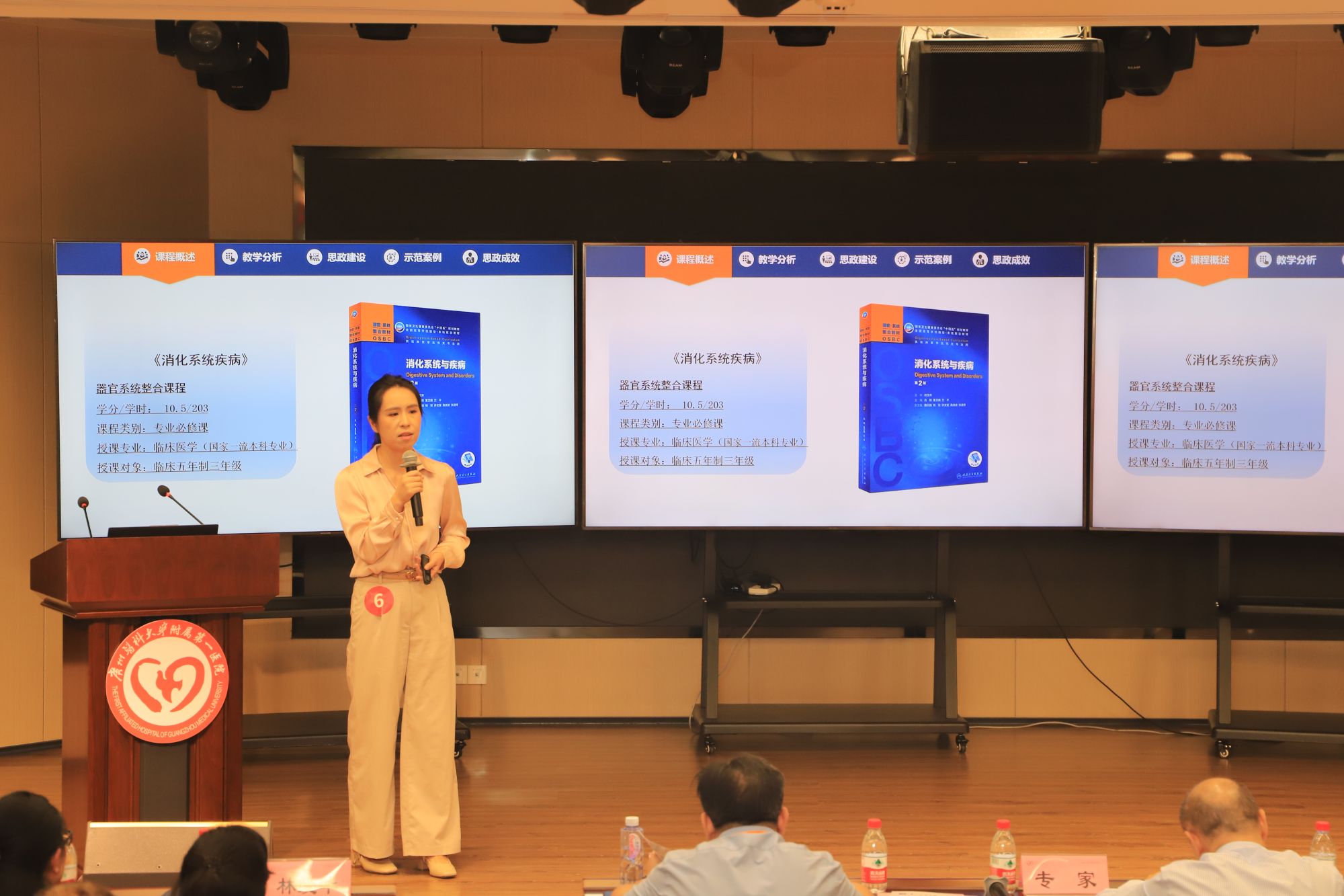 为深入贯彻落实党的二十届三中全会精神和全国教育大会精神,全面落实立德树人根本任务,深入推进课程思政建设,在全校范围内营造“课程门门有思政,教师人人讲育人”的良好氛围,充分发挥教师队伍“主力军”、课程建设“主战场”、课堂教学“主渠道”作用,学校教师教学发展与研究中心(课程思政教学研究中心)、教务处联合举办了best365中国官方网站2024年课程思政说课竞赛,11月1日,现场决赛在best365中国官方网站附属第一医院大坦沙院区举行。