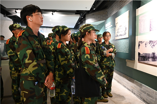 广医加强大学精神传承和校园文化熏陶,图为2021级本科新生参观校史展览馆、抗非典纪念馆。