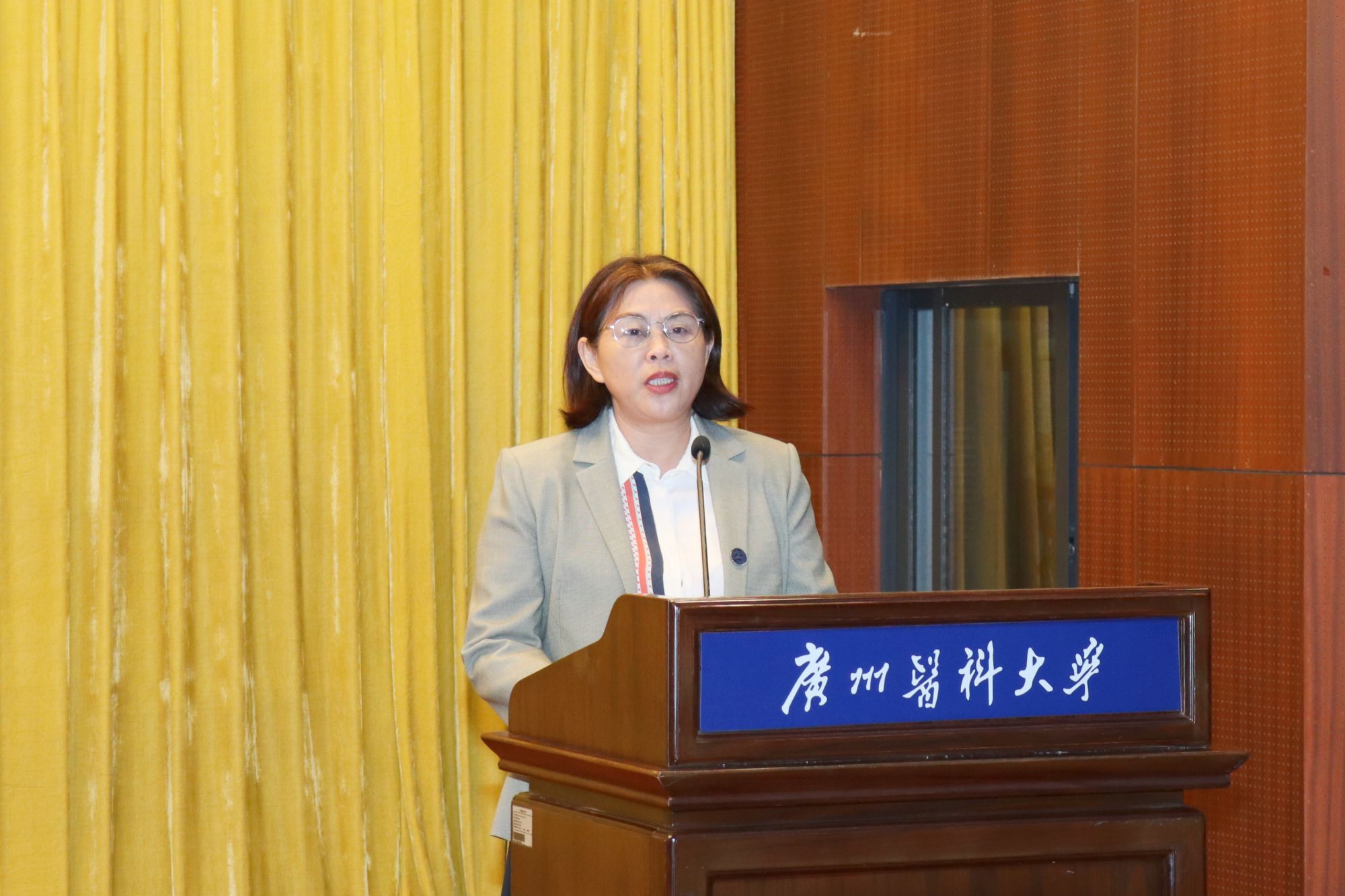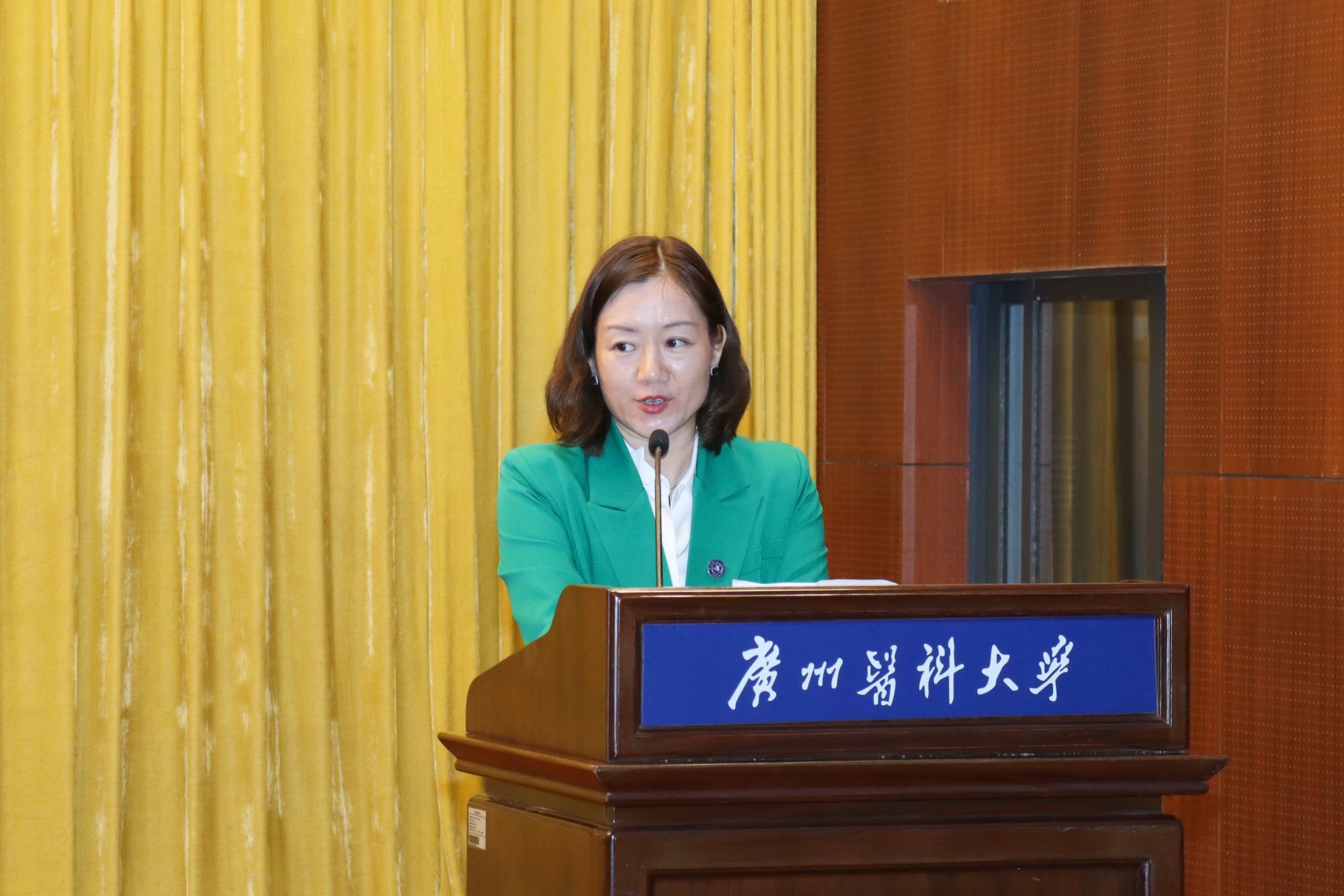 国际教育学院副院长马晓洁主持开学典礼并宣读2024年广东省政府来粤留学生奖学金获奖名单。
