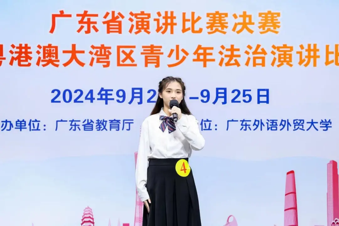 李苑瑜同学在第九届全国学生“学宪法 讲宪法”活动广东省决赛暨粤港澳大湾区青少年法治演讲比赛中获高校组二等奖