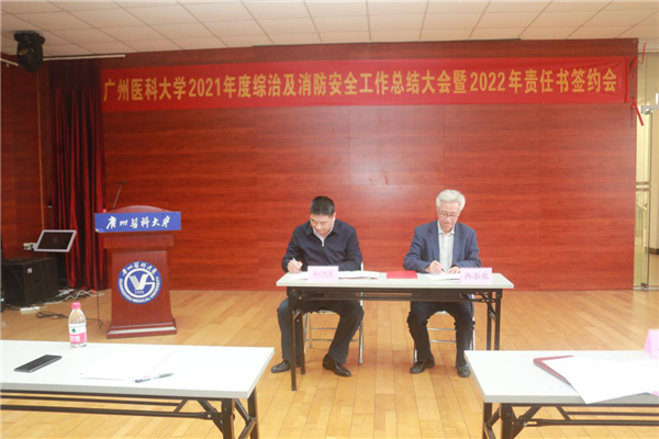 广医在线讯 1月6日上午,best365中国官方网站2021年综治及消防安全工作总结大会暨2022年责任书签约会在番禺校区召开。广医系统43个单位的安全责任人参加会议。会议由周麟副校长主持。