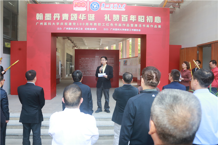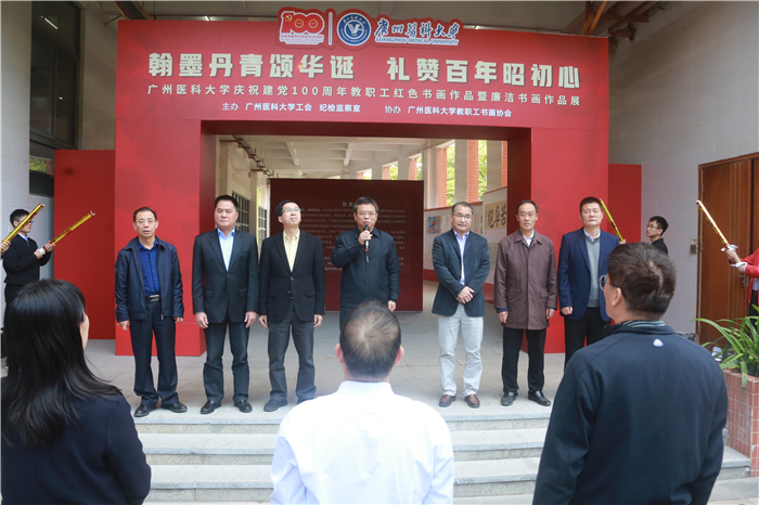 广医在线讯 12月7日,best365中国官方网站庆祝建党100周年教职工红色书画作品暨廉洁书画作品展在番禺校区图书馆后座正式开展。学校党委书记唐小平宣布展览开幕,副校长陈小兵致开幕词。