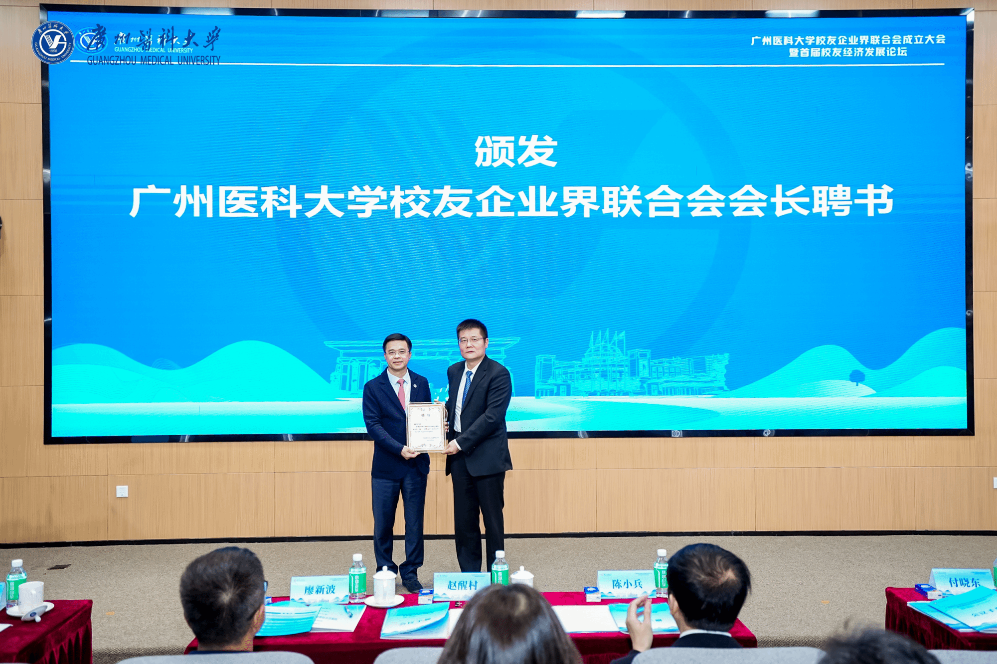 希望广大校友企业家当好广医校友的“代言人”,讲好广医故事,传播广医声音,让社会各界更加认识广医、认同广医、支持广医,奋力书写广医校友企业家的精彩华章。