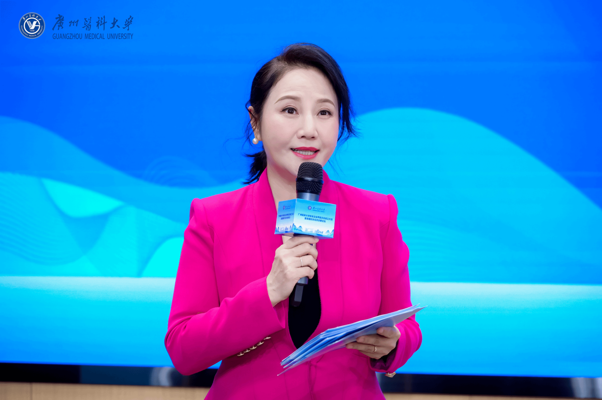 广东广播电视台著名主持人、1989级校友徐洁主持成立大会