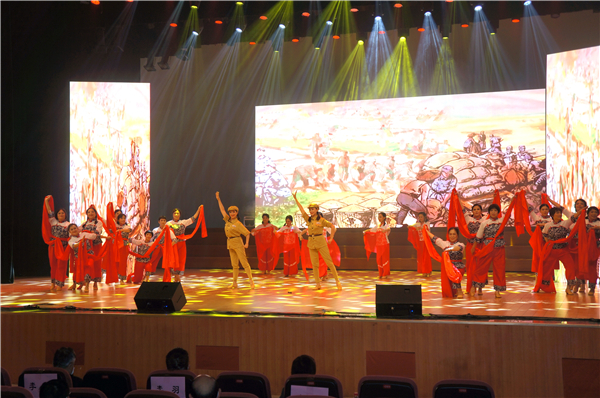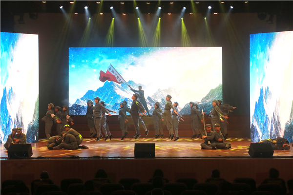 “为什么战旗美如画,英雄的鲜血染红了它;为什么大地春常在,英雄的生命开鲜花!”附属第五医院的节目《英雄赞歌》再现了英雄保家卫国的壮举。