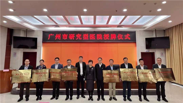 近日,广州市研究型医院授牌仪式在市卫健委举行,副市长谭萍为入选医院授牌。