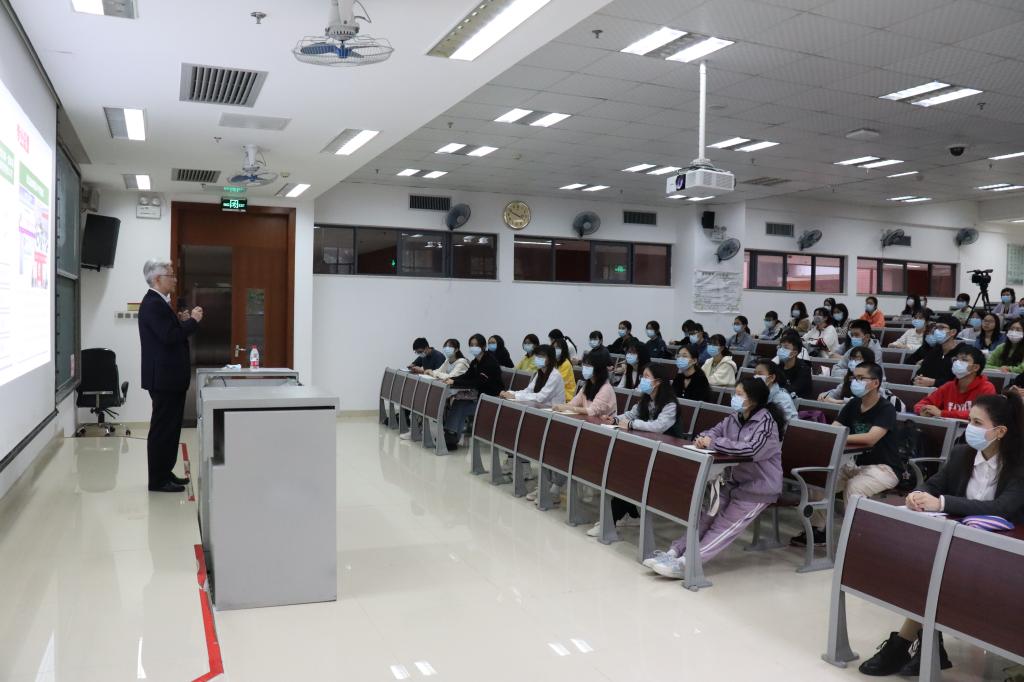 他与同学们一道深情回顾了以钟南山院士为代表的广医人在抗击非典和新冠疫情防控过程中的先进事迹。在抗击非典时,钟院士带领广医团队对疫情做出及时预警、准确判断,收治重症患者并创下全球最低死亡率,一句“将最危重的病人送到我这里来”掷地有声。在新冠肺炎疫情防控中,钟院士不惧个人安危,逆行武汉,奋战在抗疫最前线。在他的带领下,广医系统从病毒溯源、核酸筛查、医疗救治、疫苗研制和政府决策咨询等方面全链条参与新冠疫情防控工作,为守护人民生命健康和服务地方经济社会发展发挥了应有的作用。
