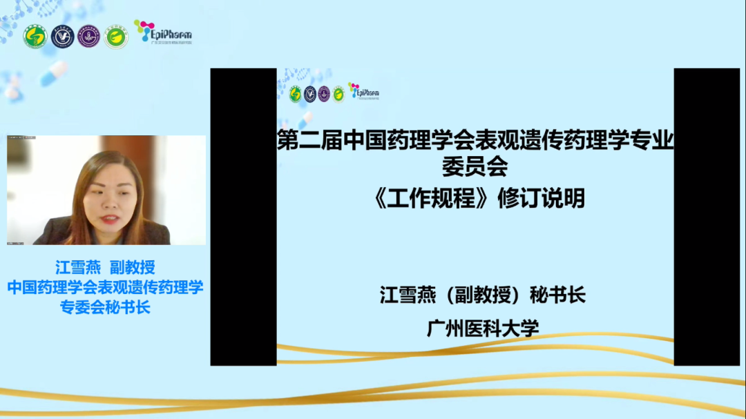4日上午,大会举行闭幕式,由专委会副主任委员、中山大学刘培庆教授主持。中国药理学会监事长李学军教授宣布专委会换届结果,专委会秘书长江雪燕作专委会《工作规程》修订说明。