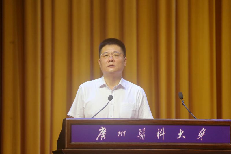 校长赵醒村代表学校祝贺新同学来到best365中国官方网站启航人生新征程。在讲话中,他带领新生走进广医这所“双一流”建设高校,了解她的动人故事和精彩历史。